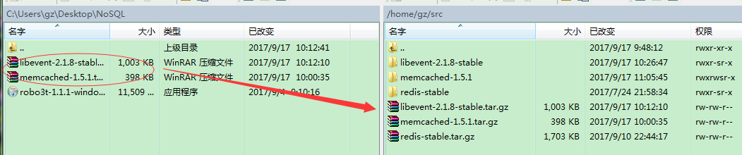 接下来我们安装:memcached-1.5.1.tar,先解压,如下图所示: