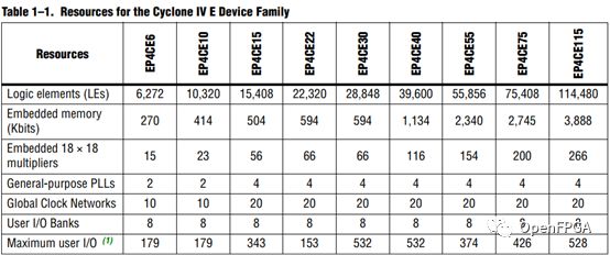 以 Intel 的 Cyclone IV E系列的 EP4CE15,以及 Xilinx 的 Spartan-6 系列的 XC3S500E 为例。以下表格都可以参考芯片的Datasheet。