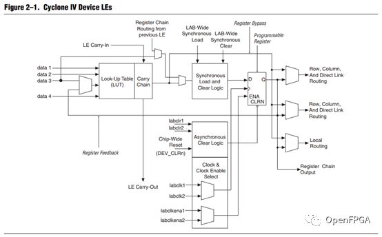 从图1-3 Cyclone IVE系列LE结构可以知道 1 LE = 1 LUT。