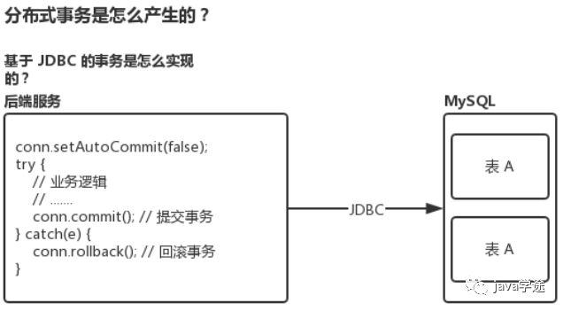 public class ServiceB {private ValueDao valueDao; //本地db操作//分布式事务注解//本地事务注解public String rpc(String value) throws BusinessException {valueDao.save(value); // (4)valueDao.saveBackup(value); // (5)return "ok-B";}}