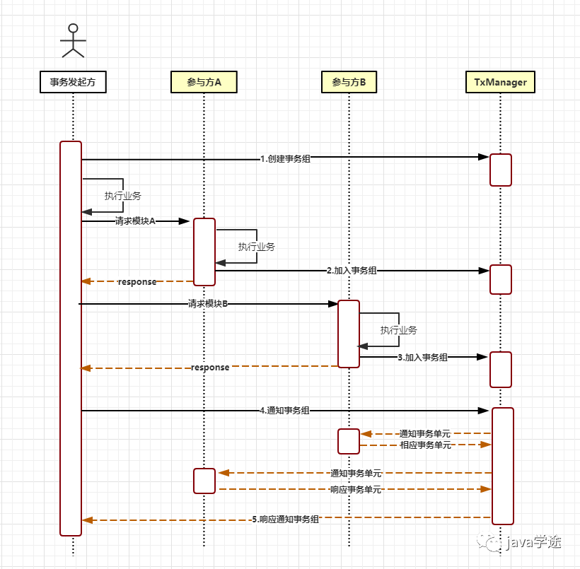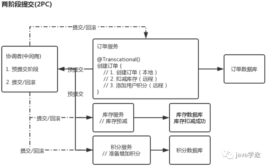 2.事务提交 参与者接收到doCommit请求之后,执行正式的事务提交。并在完成事务提交之后释放所有事务资源。