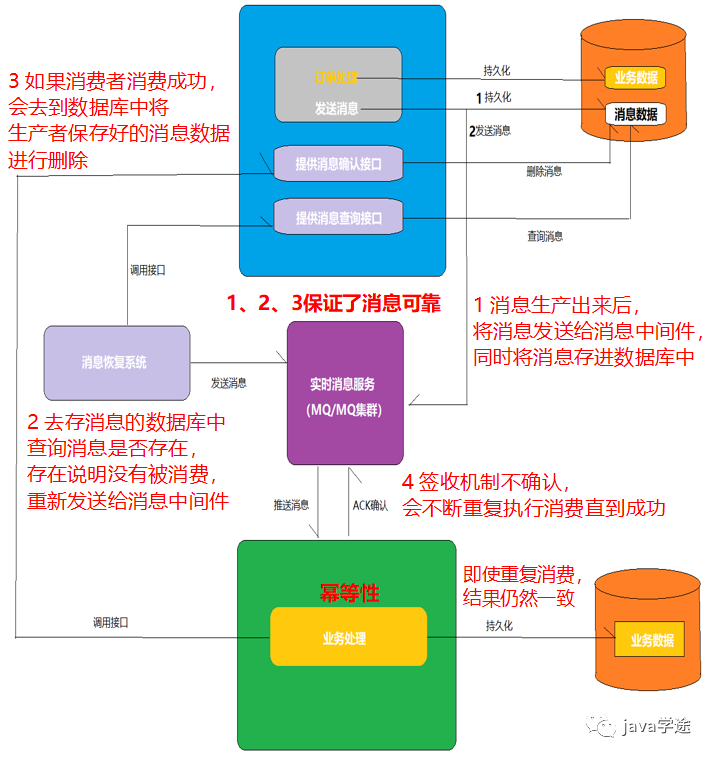 因为上面的过程不成功就会不断重试,所以:消费者对于消息的业务处理要实现幂等