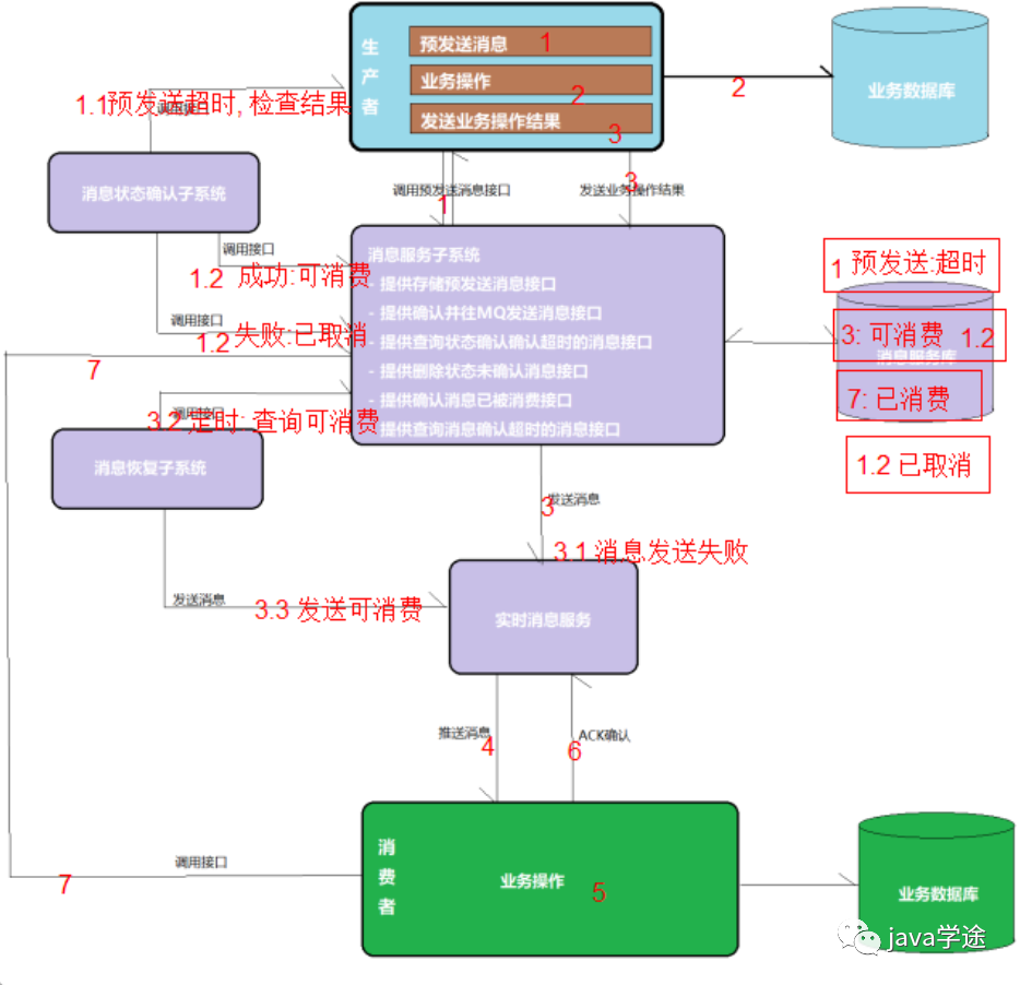 保证消息的可靠性:要保证生产者一定要能够将消息发送到消息队列中。即1、2、3步不能出问题。