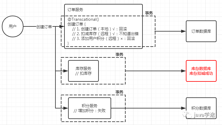 public class ServiceA {private ValueDao valueDao; //本地db操作private ServiceB serviceB;//远程B模块业务//LCN分布式事务注解//本地事务注解public String execute(String value) throws BusinessException {// step1. call remote service BString result = serviceB.rpc(value); // (1)// step2. local store operate. DTX commit if save success, rollback if not.valueDao.save(value); // (2)valueDao.saveBackup(value); // (3)return result + " > " + "ok-A";}}
