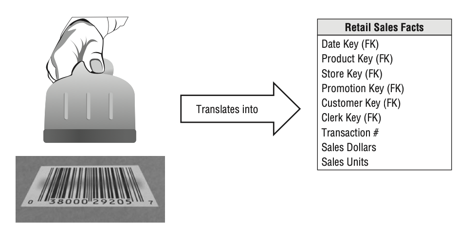 上文中已经提到事实表中存放定量数据,按照Kimball在《The Data Warehouse Toolkit, 3rd Edition》的定义:在维度模型中,事实表存放业务事件的测度(perfromance measurement)结果。事件的测试,对于销售事件来说,常规的如金额、商品件数等。在维度模型下,获取的测度值需要在各个维度的最小粒度下获取。例如在产品维度上,原始系统数据一个订单上可能包含多个不同的产品,但因为若在产品维度上需要维持到SKU的粒度, 我们就需要对原始订单进行SKU拆分之后接入到事实表。