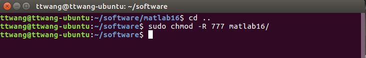 sudo chmod -R 777 matlab16/
