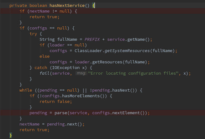 在ServiceLoader的load方法中首先会获取上下文类加载器,然后构造一个ServiceLoader,在ServiceLoader中有一个懒加载器,懒加载器会通过BufferedReader来从META-INF/services路径下读取对应的接口名的全路径名文件,也就是我们配置的文件,然后通过文件的类解析器读取文件中的内容,再通过类加载器加载类的全路径