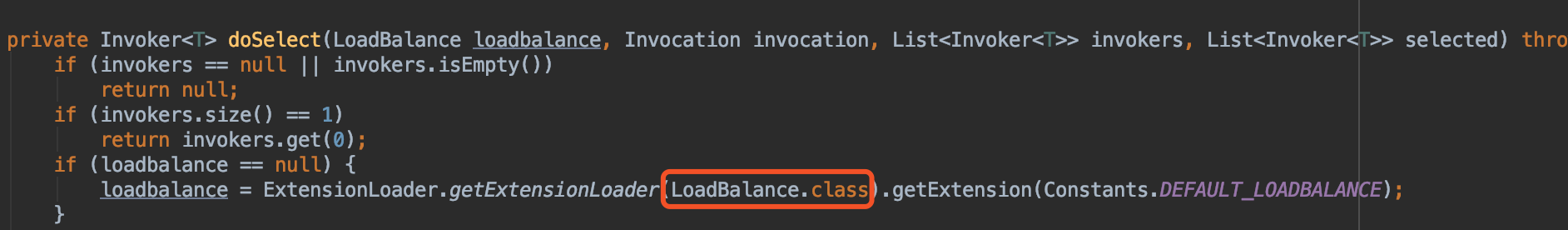 ExtensionLoader.getExtensionLoader(LoadBalance.class).getExtension(Constants.DEFAULT_LOADBALANCE)
