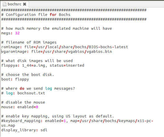 Bochs从当前目录寻找bochsrc作为配置文件