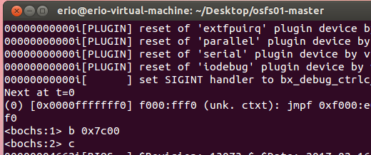 5.修改bochsrc,运行并调试你的第一个程序: