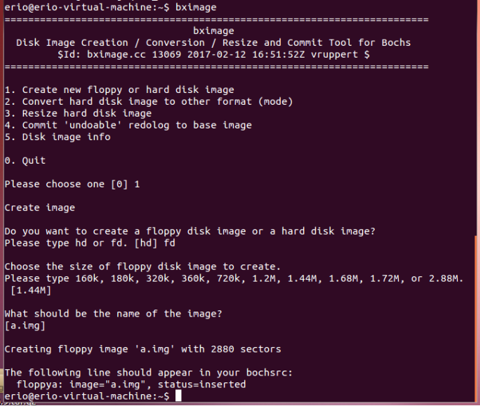 Bximage 创建新的floppy disk a.img