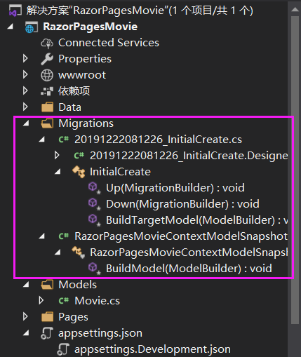 ③ Data文件夹中,新增了1个文件:RazorPagesMovieContent.cs