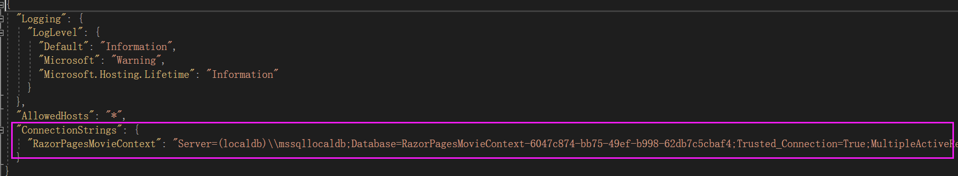 ① appsettings.json文件:增加了用于连接到本地数据库的连接字符串