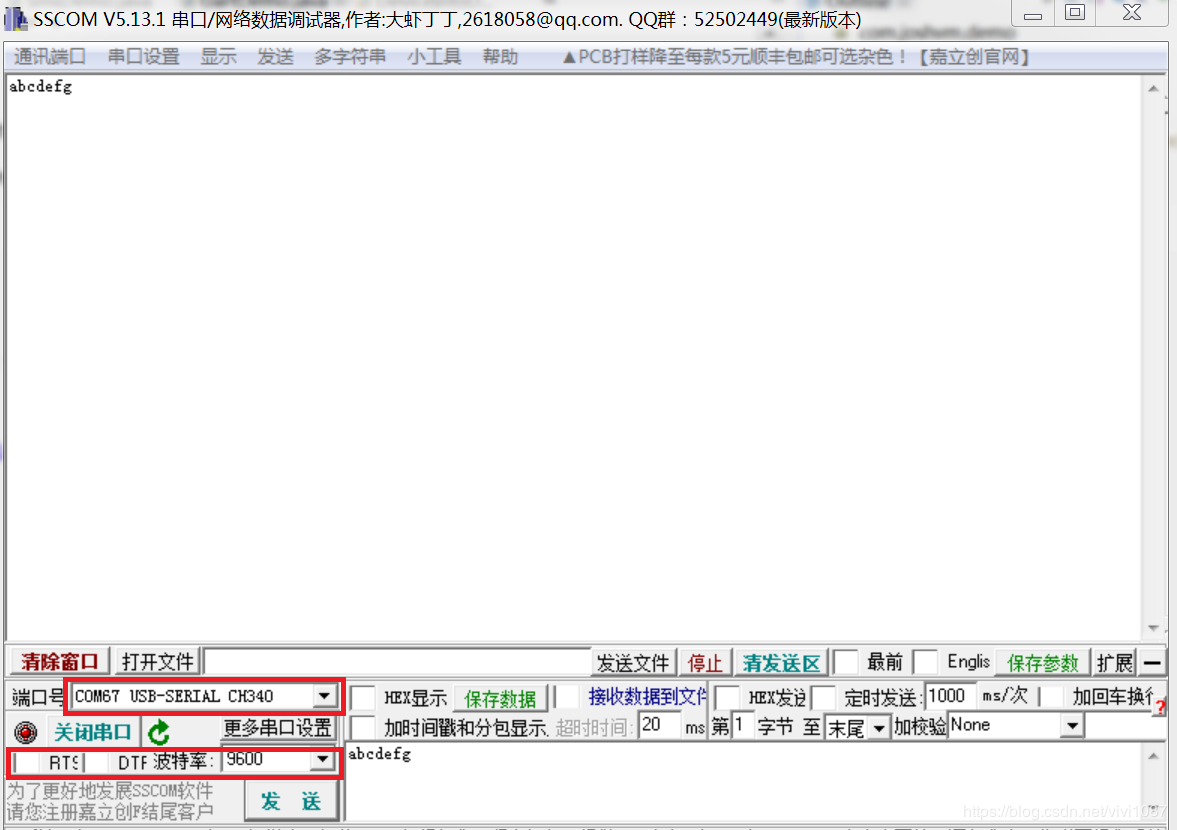 5、在PC上打开串口调试工具(可以用任何串口调试工具,比如sscom:http://www.daxia.com/sscom/sscom5.13.1.rar)