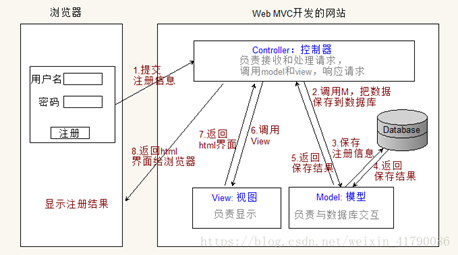 MVC设计模式也可以叫做MVC的流程,从开头到结束,是怎样一步步执行的: