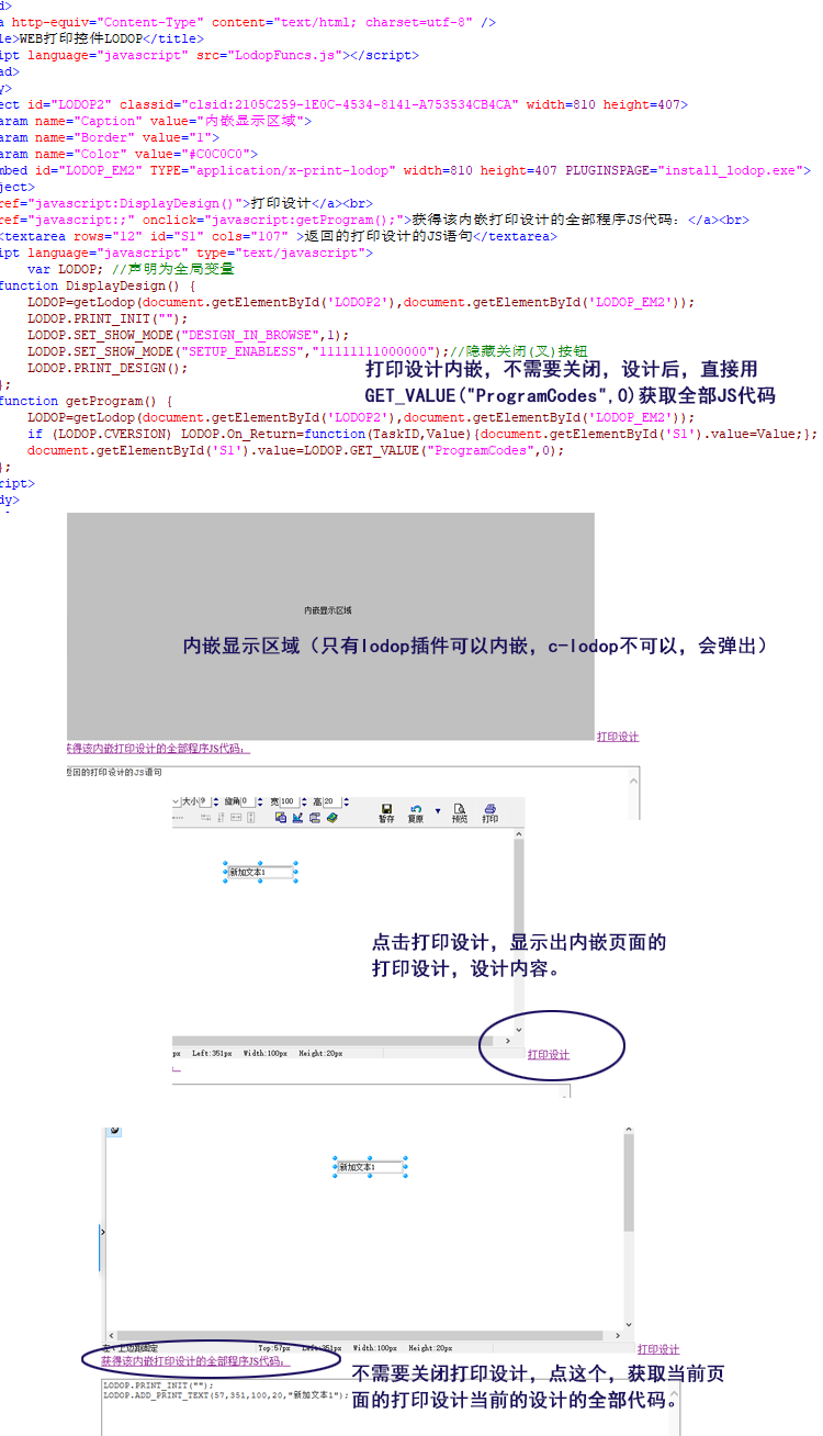3.用LODOP.GET_VALUE("ProgramCodes",0)语句,打印设计内嵌,无需关闭打印设计,就可以获取打印设计代码。