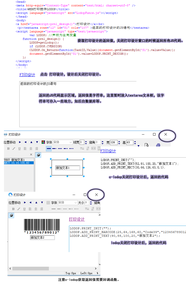 图一:该方法直接返回打印设计的返回值,c-lodop用回调,lodop直接返回。