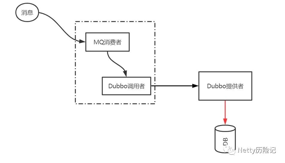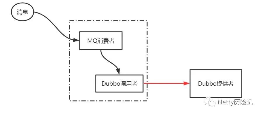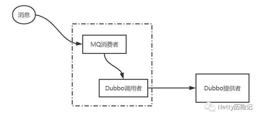 在日常后端开发中,部分业务都是接收MQ消息,在消费消息的过程中,会调用外部的Dubbo接口,根据接口返回数据,做一些业务逻辑处理.如下图