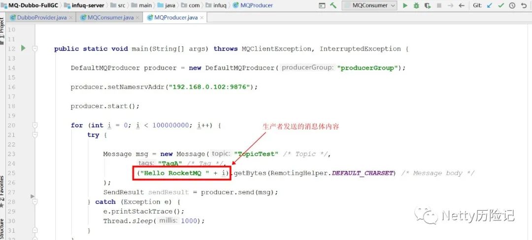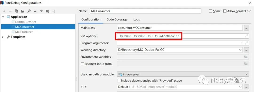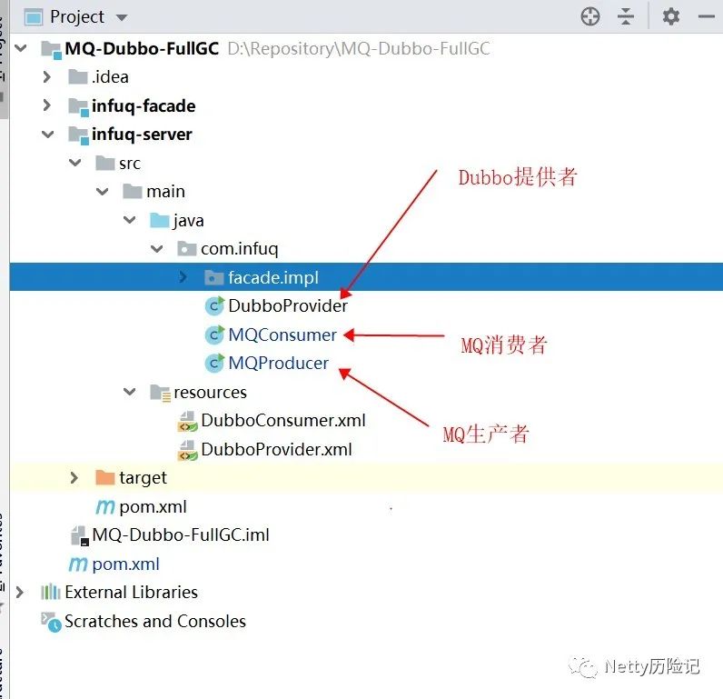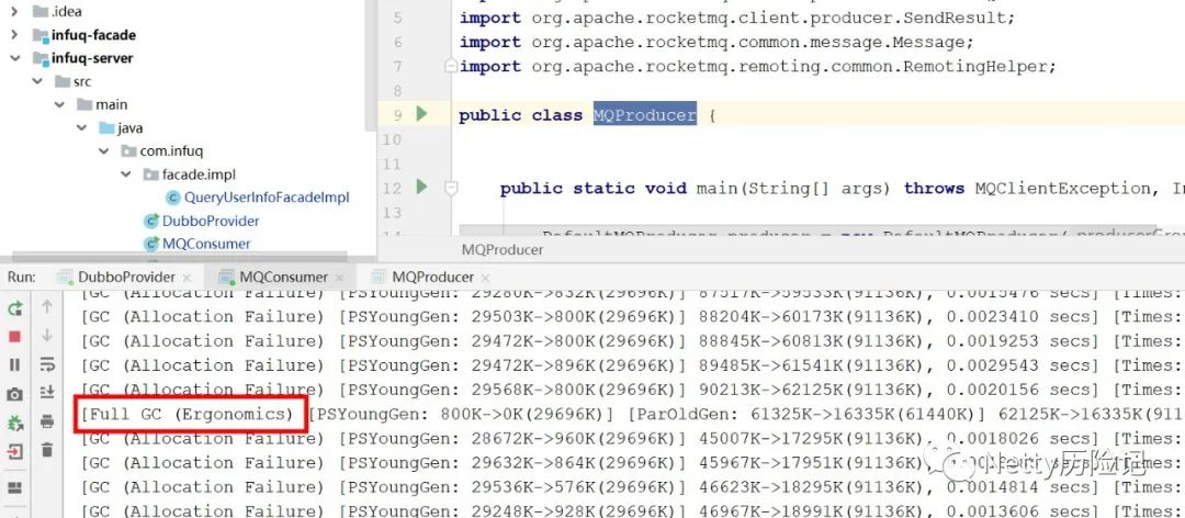 仓库代码https://github.com/infuq/MQ-Dubbo-FullGC如果需要运行上述代码,还需要部署Zookeeper和RocketMQ环境.