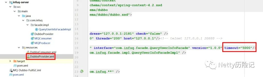 Dubbo提供者的接口超时时间设置的是5s.如下图