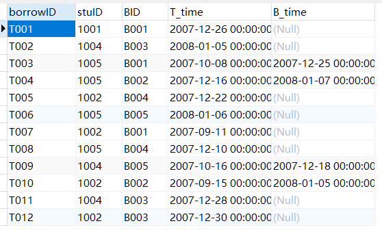 119 --5. 查询借过书但有书未归还的学生编号、学生名称、图书编号、图书名称、借出日期