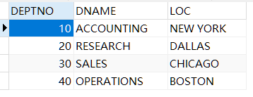10 INSERT INTO DEPT VALUES (40,'OPERATIONS','BOSTON');