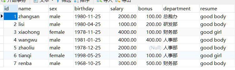 14 INSERT INTO student(id,NAME,chinese,english,math) VALUES(6,'张进宝',55,85,45);