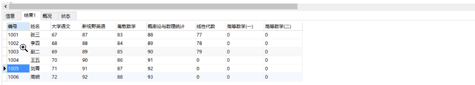 MAX(case c.coursenm when '高等数学(二)' THEN IFNULL(s.scores,0) else 0 end) '高等数学(二)'
