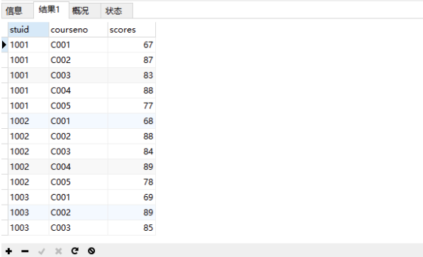 select sc.stuid , sc.courseno,sc.scores from score sc