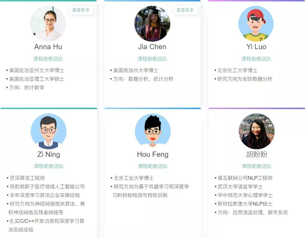 1、每位助教老师均有国内外一线AI企业从业经验,人工智能专业硕士以上学历。在学习中,除了能得到专业的解答,还可以收获超强的人脉资源。找工作内推都不是事!
