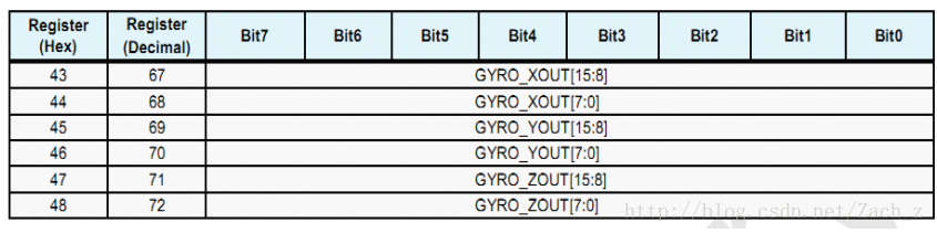 通过读取这6个寄存器,就可以读到陀螺仪 x/y/z 轴的值,比如 x 轴的数据,可以通过读取