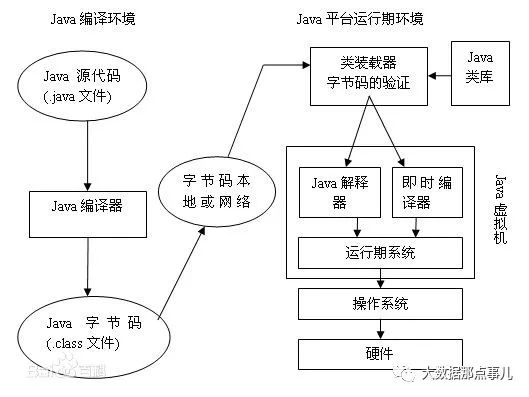 java编译器只需面向JVM,生成JVM能理解的代码或字节码文件。Java源文件经编译器,编译成字节码程序,通过JVM将每一条指令翻译成不同平台机器码,通过特定平台运行。