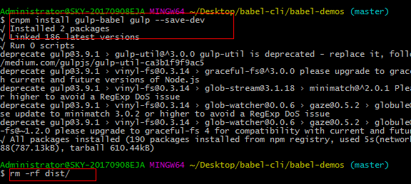 如果想将gulp和babel结合使用完成一整套的工作流程,该怎么做呢? 第一步:安装gulp插件,删掉之前输出编译之后文件的dist目录