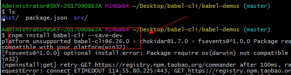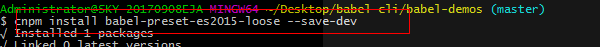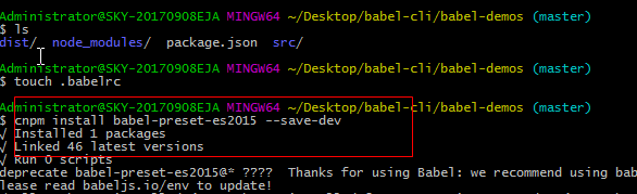 第六步:当我们工程中需要使用babel的时候,我们使用 cnpm install babel-cli --save-dev来进行安装,当前项目依赖babel-cli。