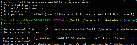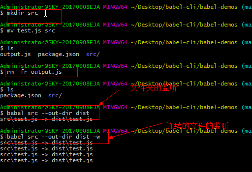第二步:下载相关的preset,并将babel去做一个监听,将src目录下的项目编译到dist目录下。