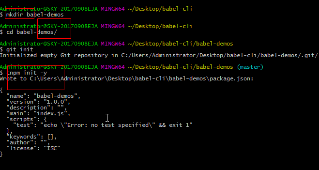 第三步:建立文件夹,初始化一个仓库,将我们的配置写成一个package.json文件。