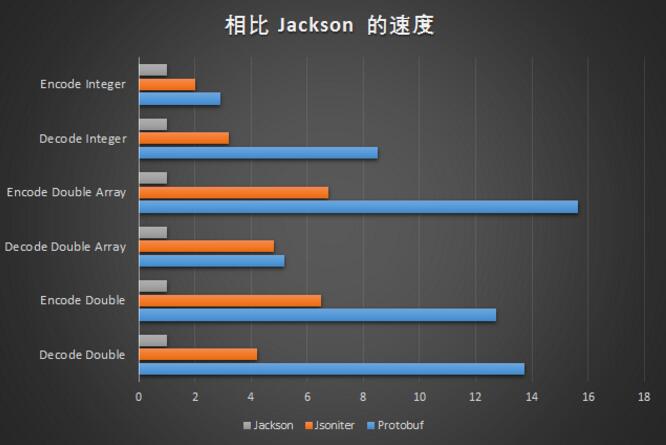 - 解码整数:Protobuf 是 Jsoniter 的 2.64 倍,是 Jackson 的 8.51 倍。