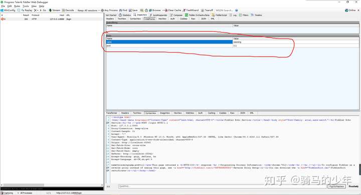 这是一个简单的登录请求被fiddler抓取到的信息,我们可以用到的分别是:
