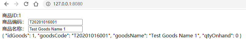 我看了几个Vue的教程Demo后,这项技术刷新了我对web前端开发技术的认知。兴奋之余,想自己动手做个demo来看看。对了我之前写了一个Springboot微服务JPADemo,这个微服务返回一个包含一条商品信息的json字符串。我们可以在浏览器上直接输入这个微服务的网址来查看返回的json字符串内容。不过这样太不友好了。我们可以写一个商品信息页面,然后将这个json包含的商品信息绑定到该页面的相应栏位上。
