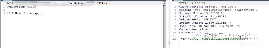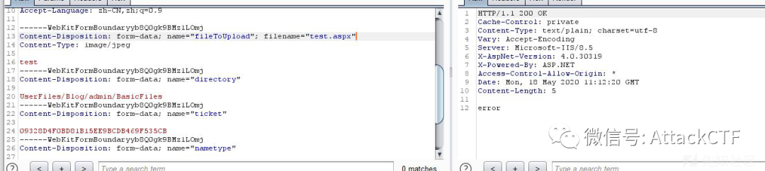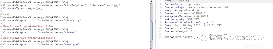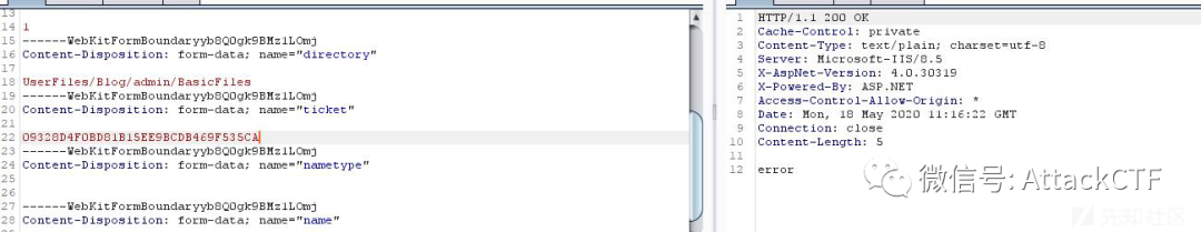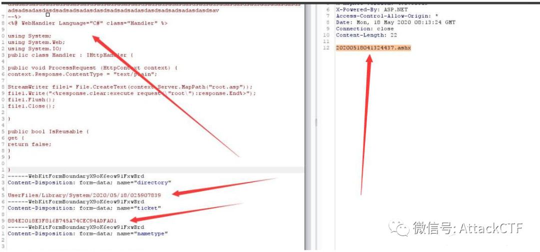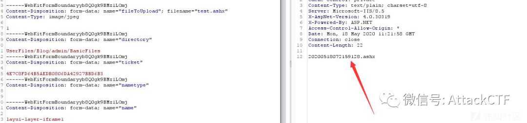 多次测试。发现生成Ticket的文件名必须要跟上传文件名相同才能成功上传。那么生成一个test.ashx(个人喜欢) 得到的Ticket替换之前的成功拿到shell。