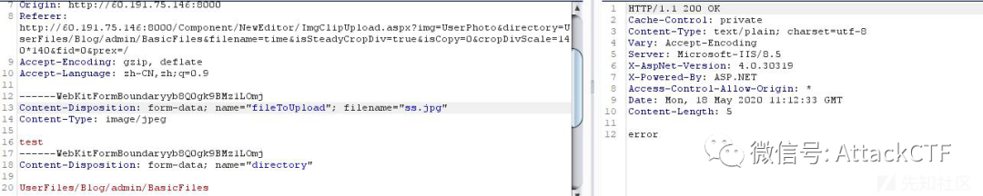 出现error,根据个人经验,出现这类问题,我一般喜欢在传一个ss.jpg。与成功上传的test.jpg同类型不同名,来判断是否为白名单。发现ss.jpg也会出现error