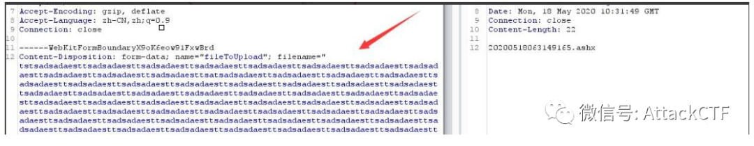 得到文件的Ticket那么,在上传的fileToUpload 的文件名,也要与Ticket的文件名相同,复制过来同时,因为WAF自带内容检测。那么。将shell代码放在垃圾字符的末尾。