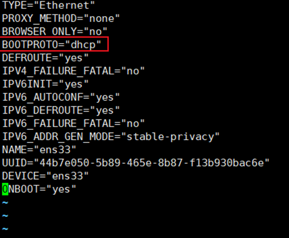 可见BOOTPROTO是dhcp模式,随机分配的ip