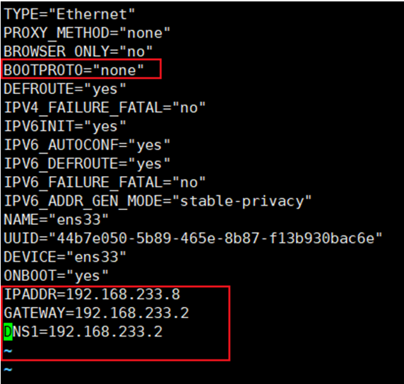 打开网络配置文件:vim /etc/sysconfig/network-scripts/ifcfg-ens33