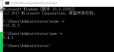 1. Node.js:在nodejs官网下载最新的安装包,选择安装目录,傻瓜式安装。安装完成后,打开dos命令,输入node -v命令,会显示安装的nodejs版本,表明安装成功。因为默认安装nodejs时,会自动安装npm,在dos命令窗口输入npm -v命令,会显示安装的npm版本。