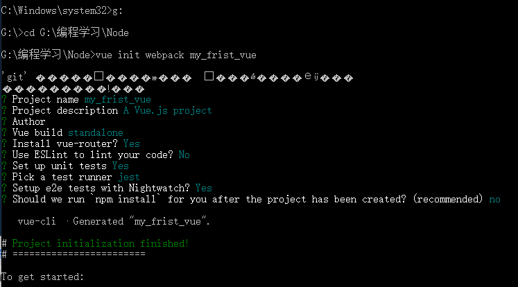 Setup e2e tests with Nightwatch:是否我用e2e测试(默认Yes,不懂,直接默认)