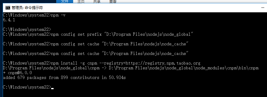 为方便管理,且减轻系统盘压力(默认会把配置和缓存放到个人文档AppData下),将nodejs的node_global和node_cache转移至nodejs安装目录下。在nodejs安装目录下,创建node_global和node_cache两个文件夹,分别执行如下语句(XXXX指nodejs安装目录)