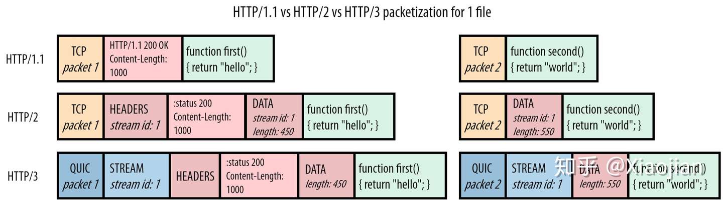 注意:这并不意味着 QUIC 突然知道 JS 或 CSS 文件,甚至知道它正在传输 HTTP;和 TCP 一样,QUIC 应该是一个通用的、可重用的协议。它只知道有独立的流(streams),它可以单独处理,而不必知道它们到底是什么。