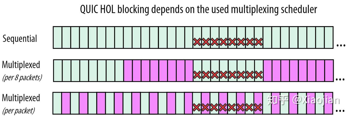 注意:这也是为什么大多数 QUIC 实现很少同时创建包含来自多个流(streams)的数据包(packets)的原因。如果其中一个数据包丢失,则会立即导致单个数据包中所有流的队头阻塞!