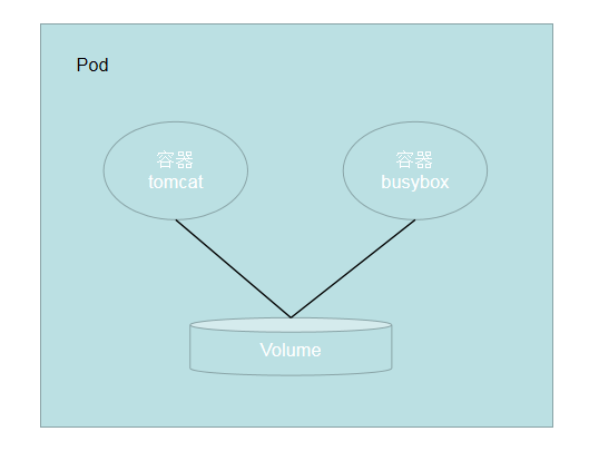 emptyDir的使用也比较简单,在大多数情况下,我们先在Pod生命一个Volume,然后在容器里引用该Volume并挂载到容器里的某个目录上,比如,我们在一个Pod中定义2个容器,一个容器运行nginx,一个容器运行busybox,然后我们在这个Pod上定义一个共享存储卷,里面的内容两个容器应该都可以看得到,拓扑图如下: